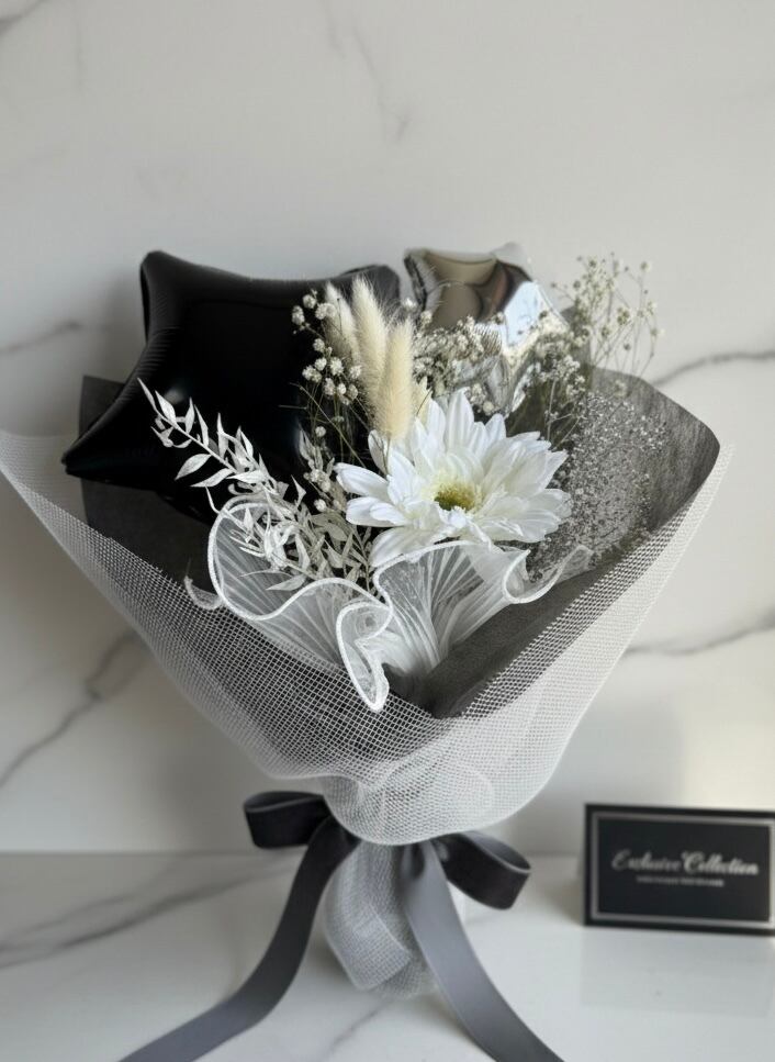 ブラックシルバーバルーンブーケ 花束 ギフト